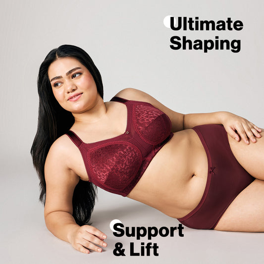 Nykd By Nykaa Ultimate No Bulge, Shape & Support Non Padded Non Wired Lace Bra NYB033 Wine