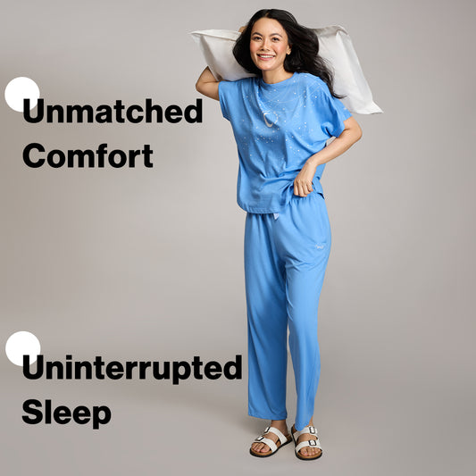 NYKD BY NYKAA BUTTERY SOFT MODAL COTTON PYJAMA WITH CLEAN ELASTICATED WAIST & POCKETS NYS911 Light Blue