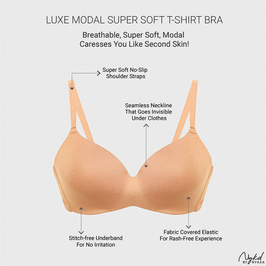 Nykd by Nykaa Super Soft Luxe Modal Padded Non Wired 3/4th Coverage T-Shirt Bra NYB013 Nude