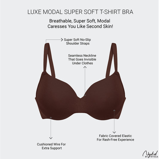 Nykd by Nykaa Super Soft Luxe Modal Padded Cushioned Wire T-Shirt Bra NYB218 Brown