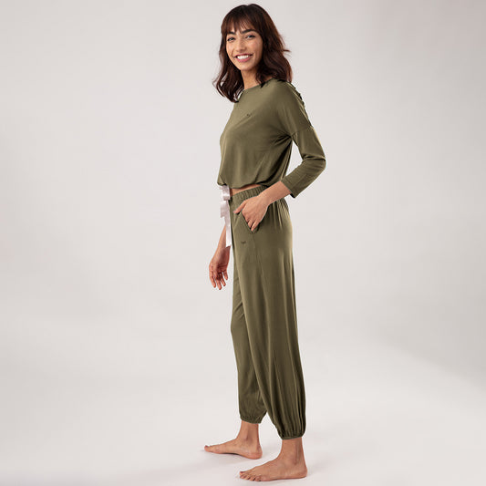 Sumptuously Soft Modal Lounge Pajama Set of 2-Burnt-NYS016-Olive