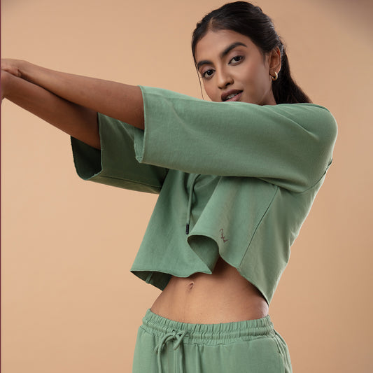 Nykd All Day Preppy short sleeve Cropped Hoodie-NYAT200-Jade green