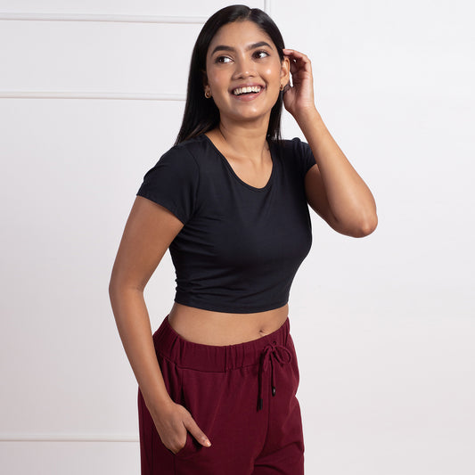 Nykd All Day Essential Modal Short Sleeve Crop Top-NYOE011-Jet Black