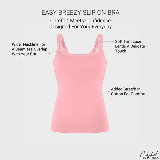 Nykd by Nykaa Essential Cotton Stretch Trim Lace Camisole with Adjustable Straps NYC013 Blush