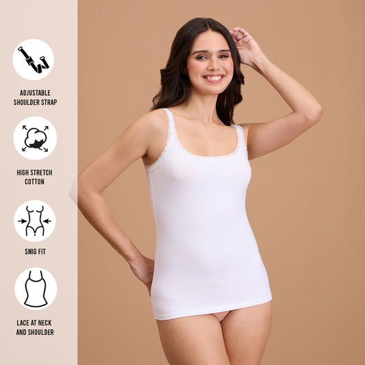 Essential Cotton Stretch Trim Lace Camisole with Adjustable Straps-NYC013-White