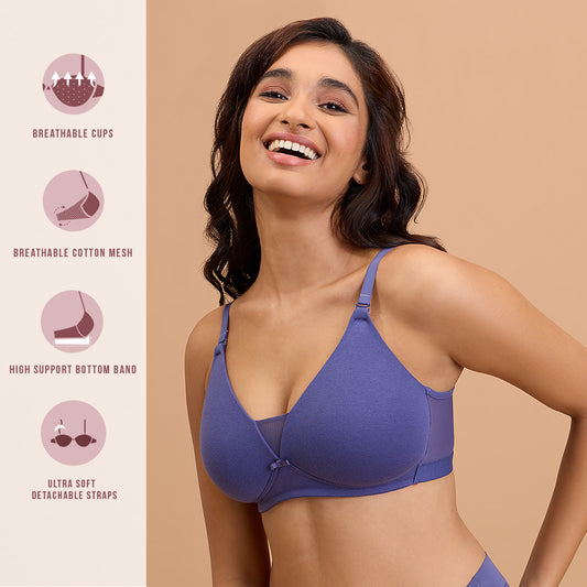Nykd By Nykaa Breathe Cotton Triangle Cup Padded Non Wired T-Shirt Bra NYB003 Purple