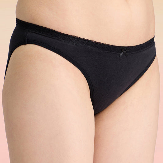 Lola & Mae C.O.A.T Pack of 1 Bikini Panty With Trim Lace-LMP1007-Black