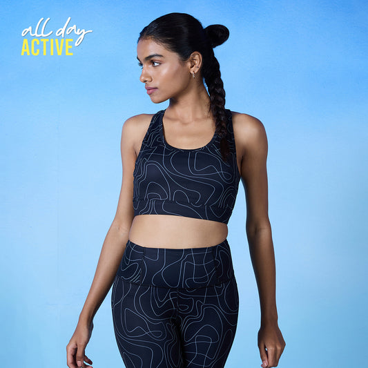 Trendsetter Printed Sports Bra-NYK082 & Legging-NYK121-Batik Black Print co-ord set