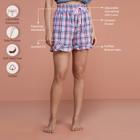 Cotton Plaid Shorts-NYS131-Lavender Plaid