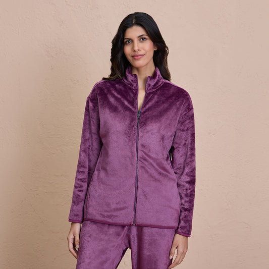 Luxe Fur Jacket with Zippered Front-NYS120-Wine