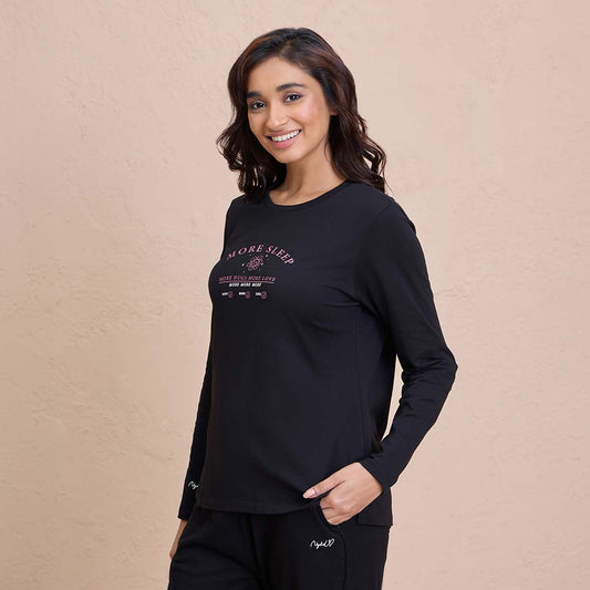 Long Sleeve Tee in Cotton with Graphic-NYS802-Black