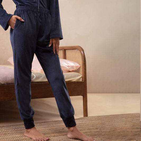 Luxe Velour Jogger in Relaxed Fit-NYS049-Navy Blue