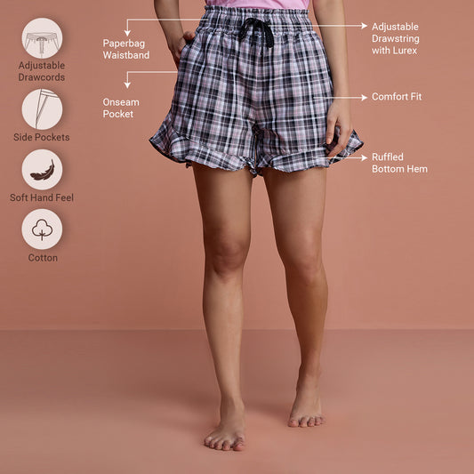 Cotton Plaid Shorts-NYS131-Black Plaid