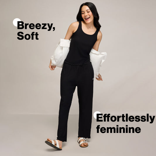 Nykd By Nykaa Essential Soft Ribbed Pyjama With Pockets & Curled Hem Detail Nys909 Black