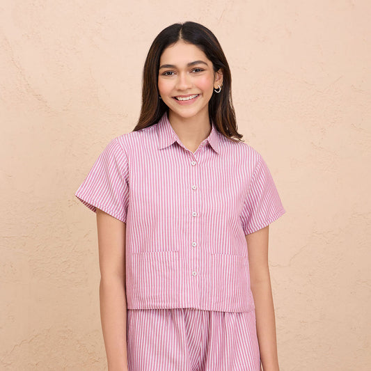 Comfy Cotton Shirt in Relaxed Boxy Fit-NYS913-Grape stripe