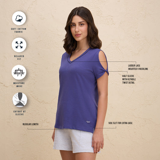 Summer Essential Super Comfy Relaxed V Neck Slub Cotton Tee-NYLE513-Blue