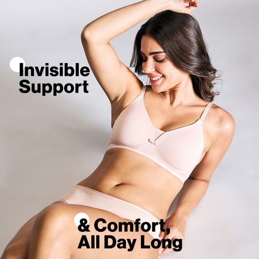 Nykd By Nykaa Breathe Cotton Triangle Cup Padded Non Wired T-Shirt Bra NYB003 Nude