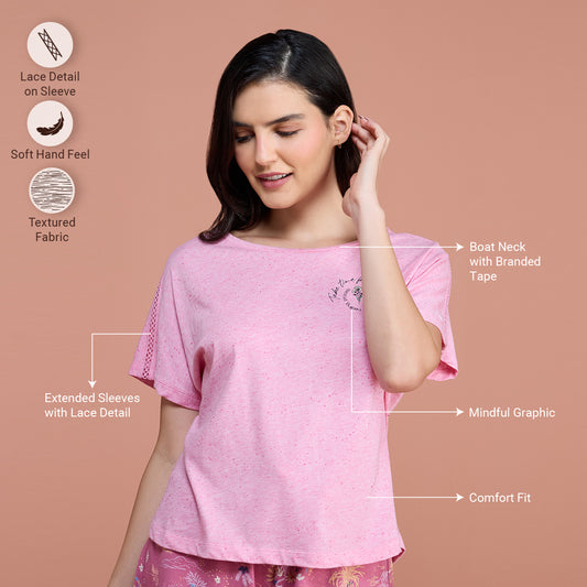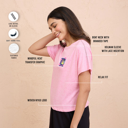 Comfy neppy Textured Lace Detail Tee-NYS134-Light Pink
