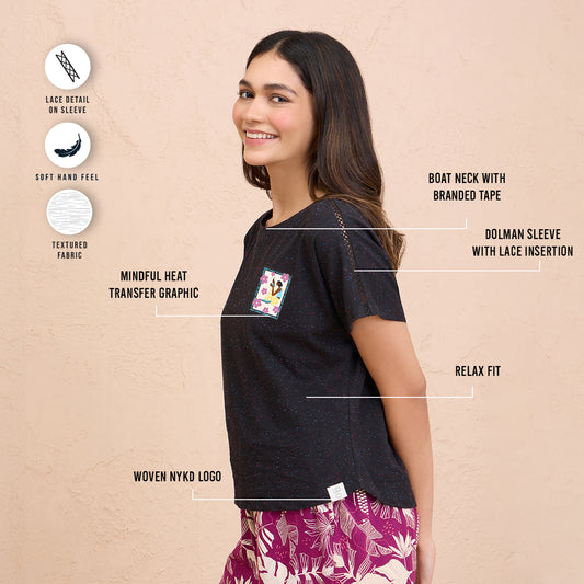 Comfy neppy Textured Lace Detail Tee-NYS134-Jet Black