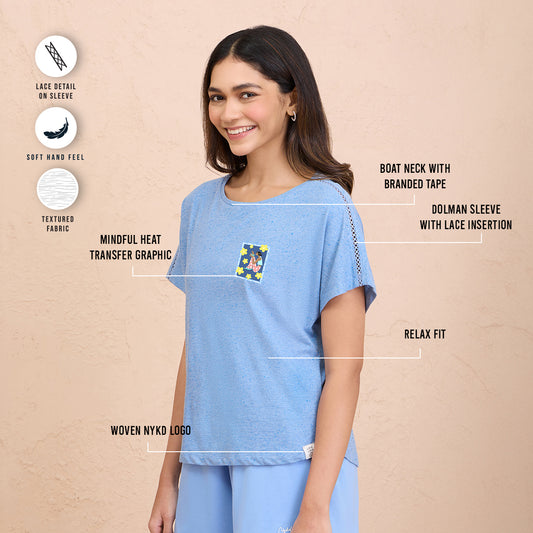 Comfy neppy Textured Lace Detail Tee-NYS134-Light Blue