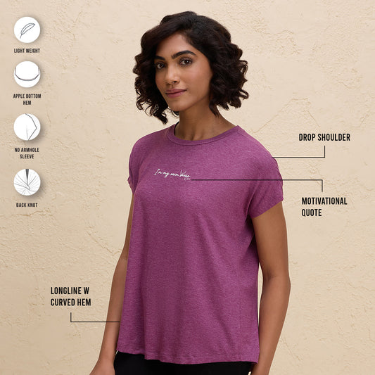Super Comfy Relaxed Fit Tee with Stylish Back Knot Detail-NYAT279-Wine