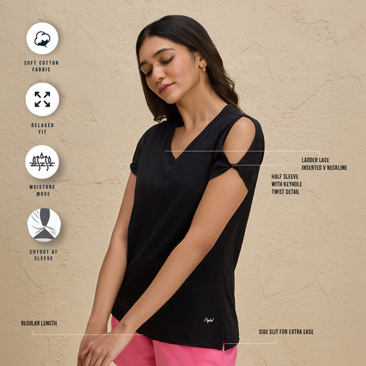 Summer Essential Super Comfy Relaxed V Neck Slub Cotton Tee-NYLE513-Black