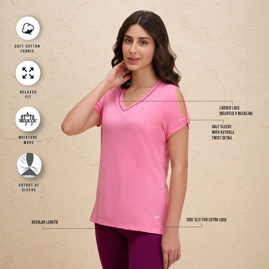 Summer Essential Super Comfy Relaxed V Neck Slub Cotton Tee-NYLE513-Pink
