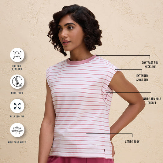Extended Shoulder Cotton Tank Top with 2 Degree Cooling Tech-NYLE514-Pink White