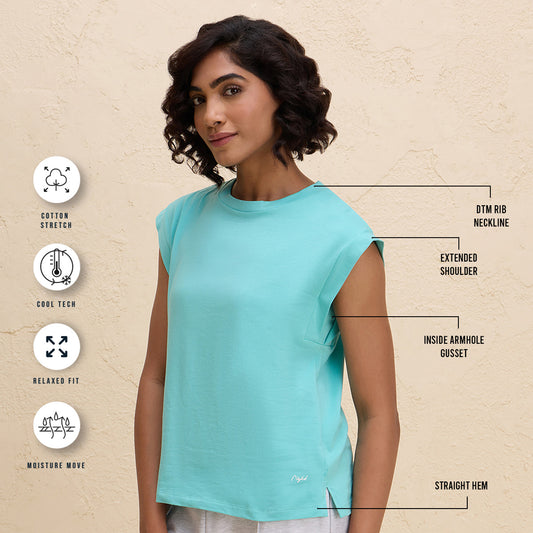 Extended Shoulder Cotton Tank Top with 2 Degree Cooling Tech-NYLE514-Turquoise