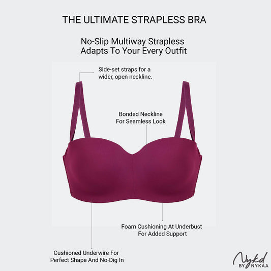 Nykd By Nykaa The Ultimate Multiway Strapless Padded Wired Bra NYB027 Wine