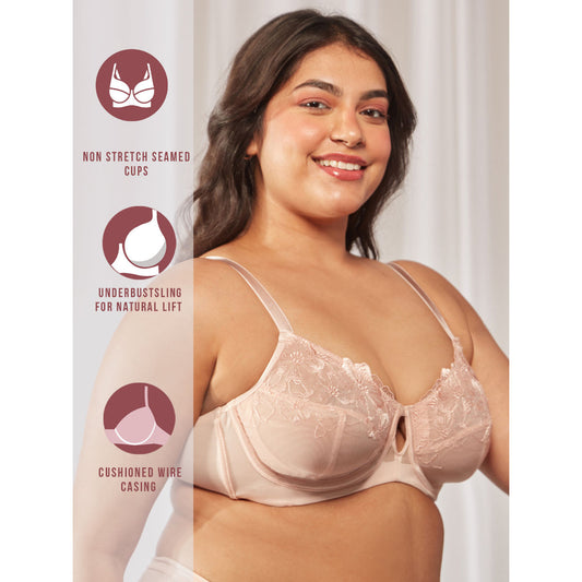 Floral Mesh Underwired Non-padded Lace Bra-NYB221-Peach