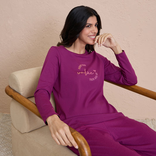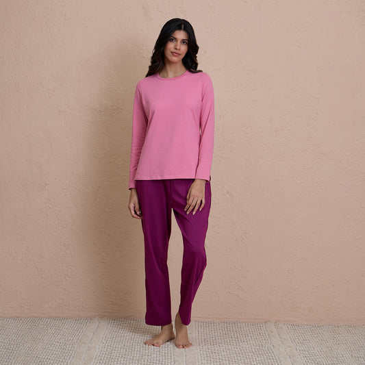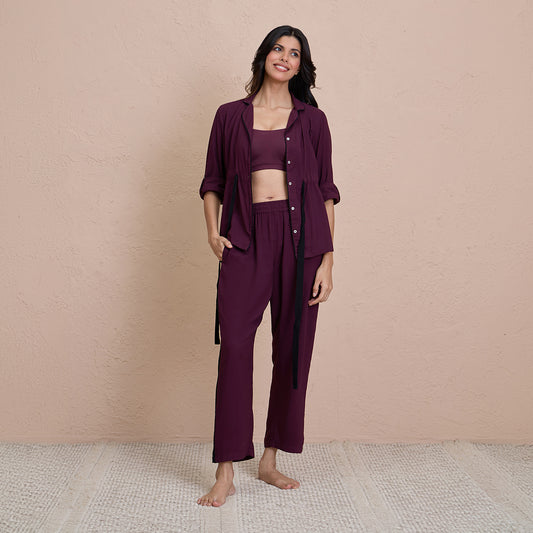 Comfy Pajama Set with Flattering Stylish Sleep Shirt in Rayon-NYS904-Fig