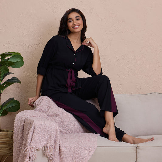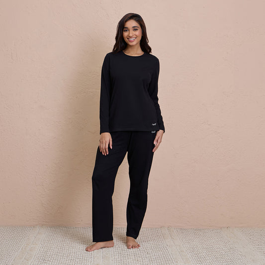 Comfy Pajama Set with Flattering Stylish Sleep Shirt in Rayon-NYS904-Black
