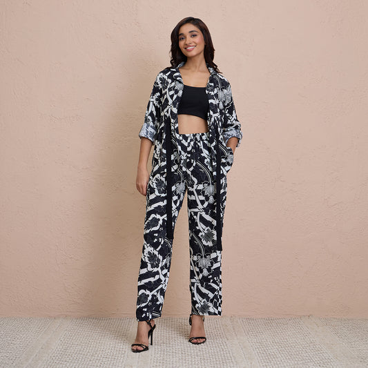 Comfy Pajama Set with Flattering Stylish Sleep Shirt in Rayon-NYS904-Tropical Black Print