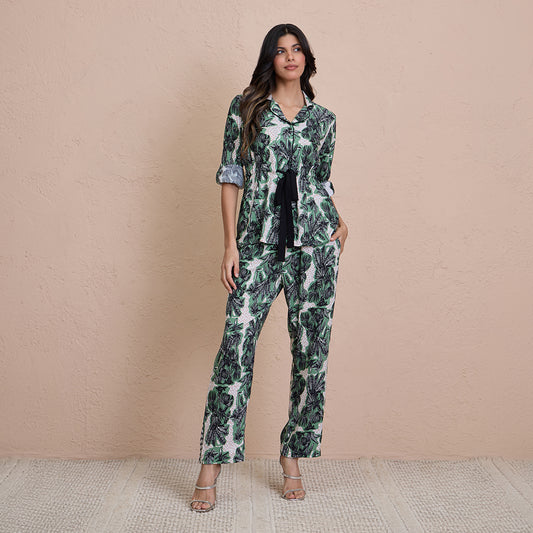 Comfy Pajama Set with Flattering Stylish Sleep Shirt in Rayon-NYS904-Green Print