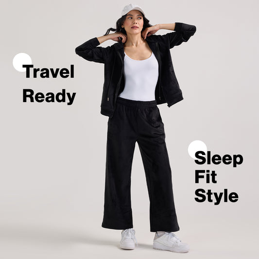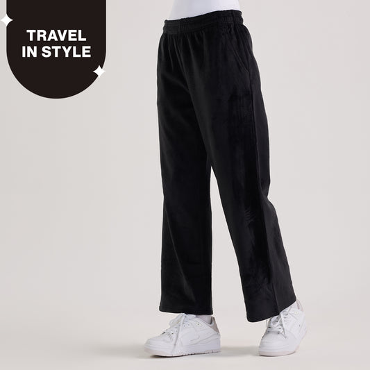 Velour Flared Pants in Super Soft Luxe Texture-NYS919-Black