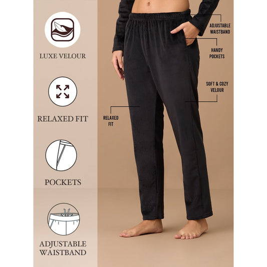 Luxe Velour Pants in Relaxed Fit-NYS048-Jet Black