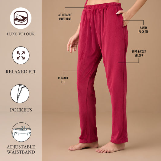 Luxe Velour Pants in Relaxed Fit-NYS048-Wine