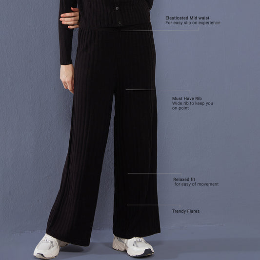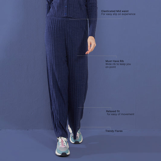 Ribbed Flare Pants-NYLE113-Denim Blue
