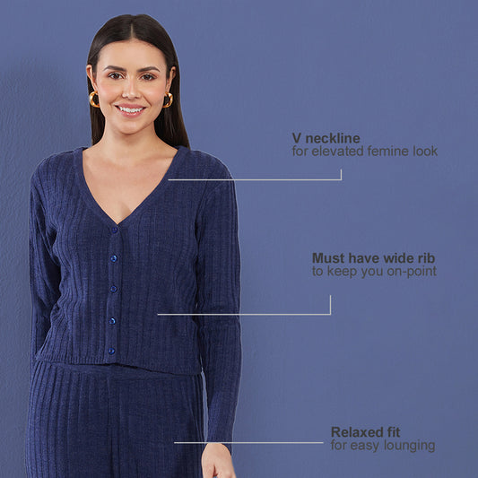 Ribbed Comfy Cardigan Top-NYLE116-Denim Blue