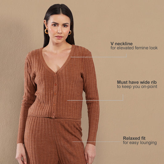 Ribbed Comfy Cardigan Top-NYLE116-Light Brown
