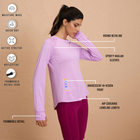 Flattering Hip Covering Long Sleeved Active Dry Fit Top-NYK311-Purple