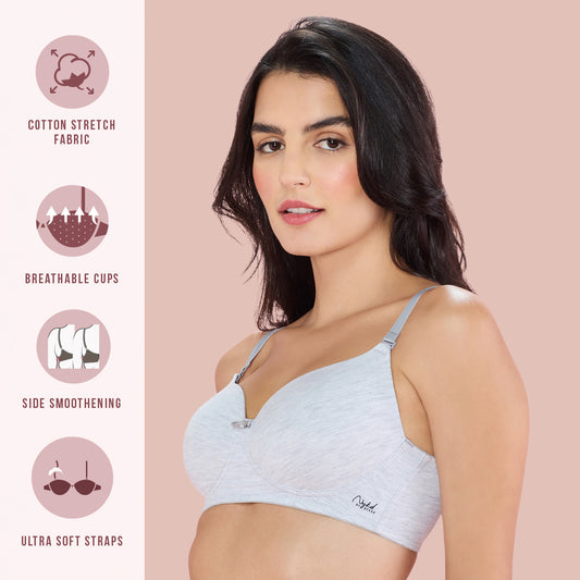 Nykd By Nykaa Breathe Cotton All Day Comfort Padded Non Wired T-Shirt Bra Nyb198 Grey Melange