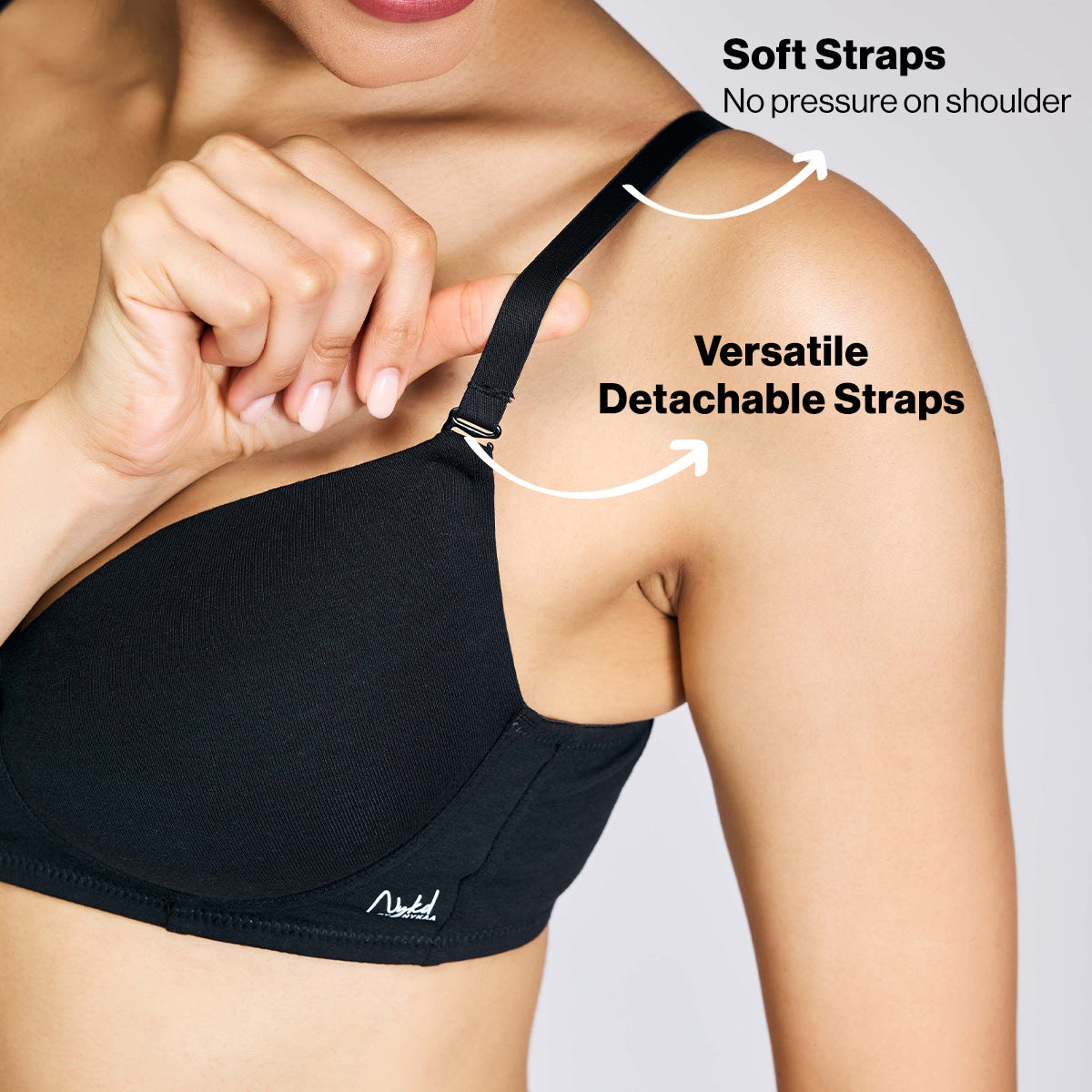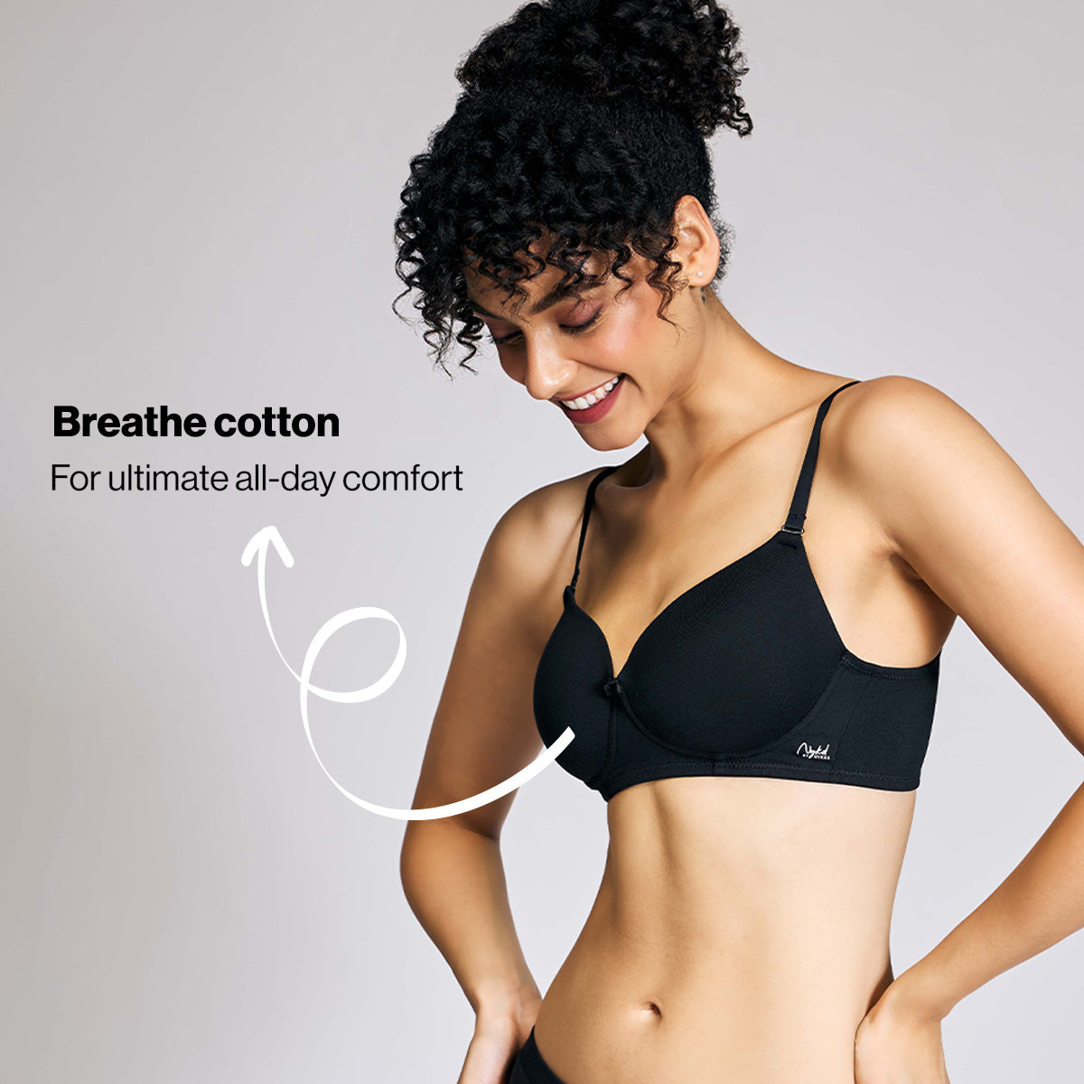 Nykd By Nykaa Breathe Cotton All Day Comfort Padded Non Wired T-Shirt Bra Nyb198 Black