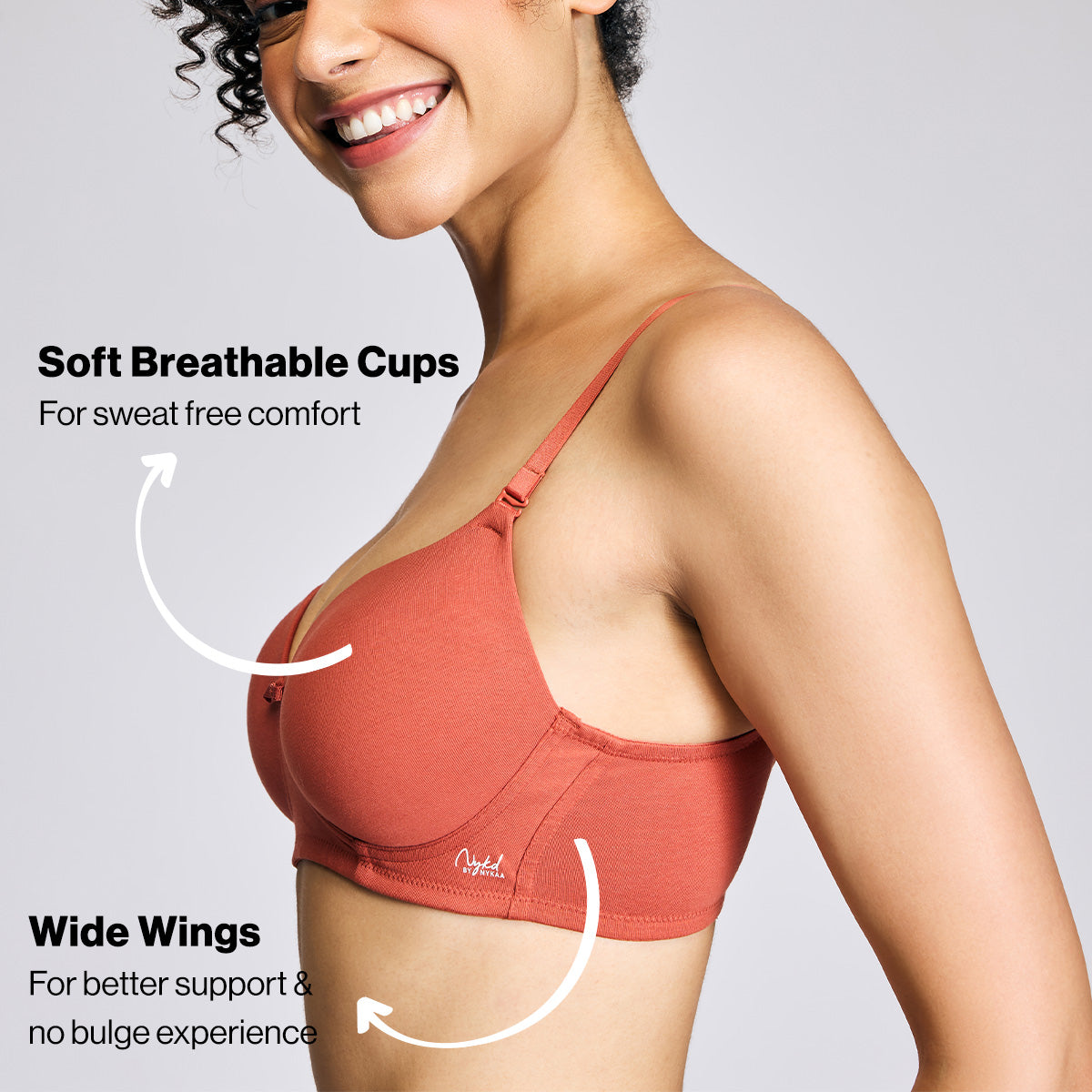 Nykd By Nykaa Breathe Cotton All Day Comfort Padded Non Wired T-Shirt Bra Nyb198 Carrot