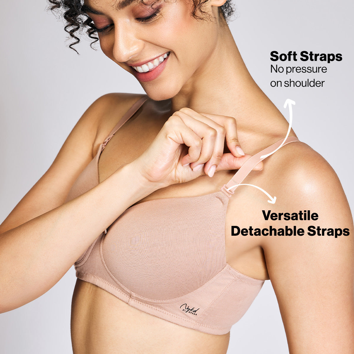 Straps: Super-soft, detachable straps with a multiway feature of converting into cross-back
