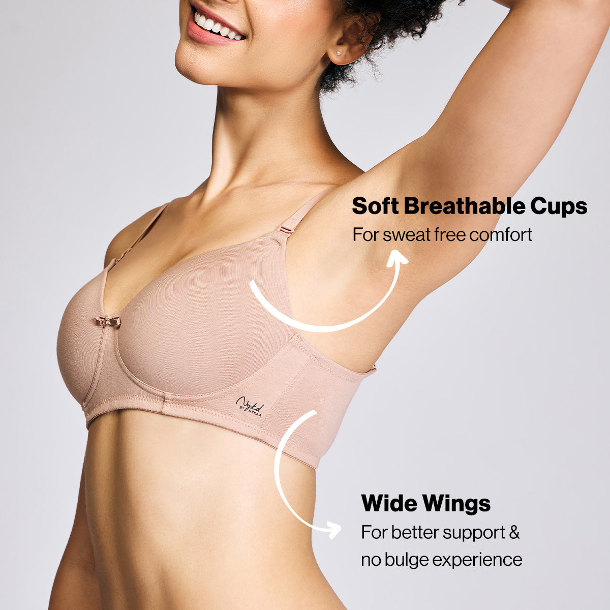 Nykd By Nykaa Breathe Cotton All Day Comfort Padded Non Wired T-Shirt Bra Nyb198 Dark Skin