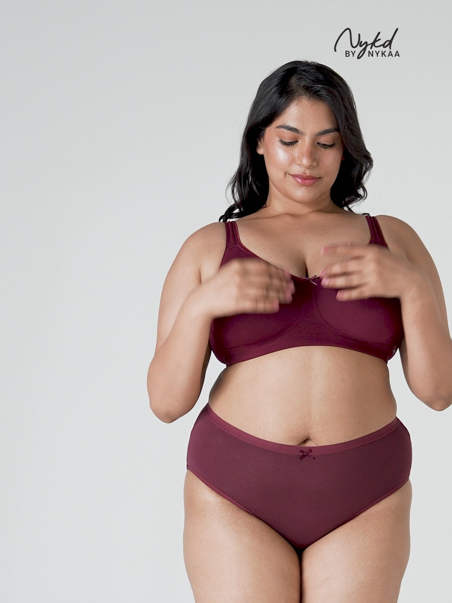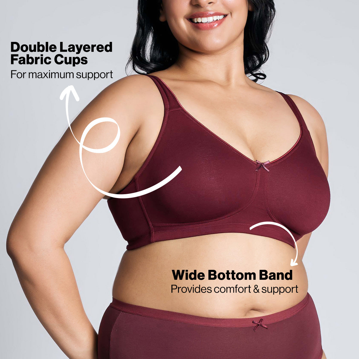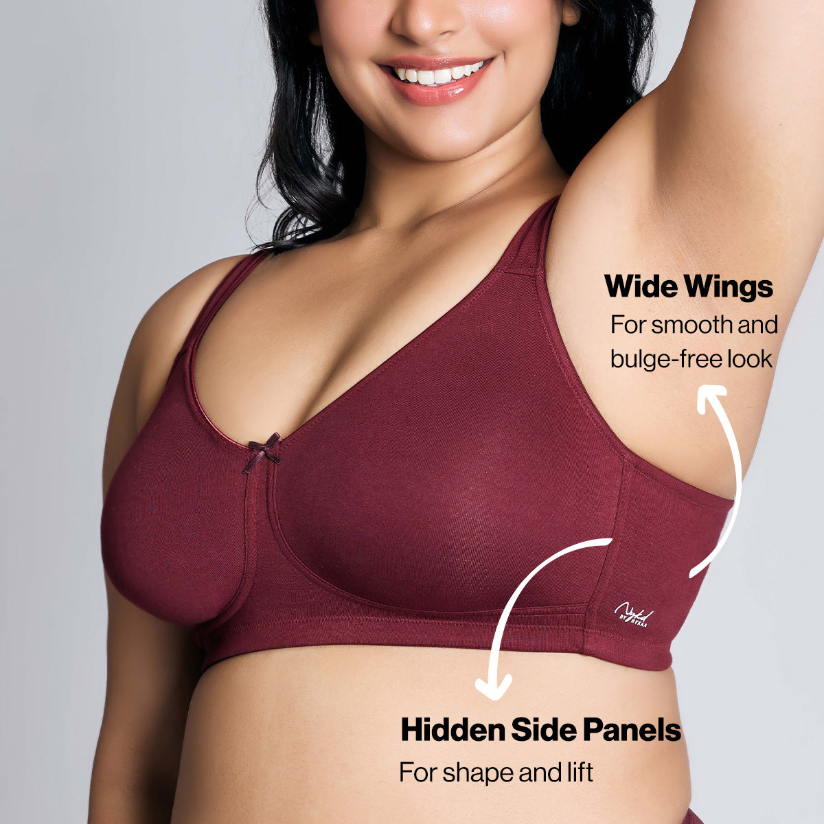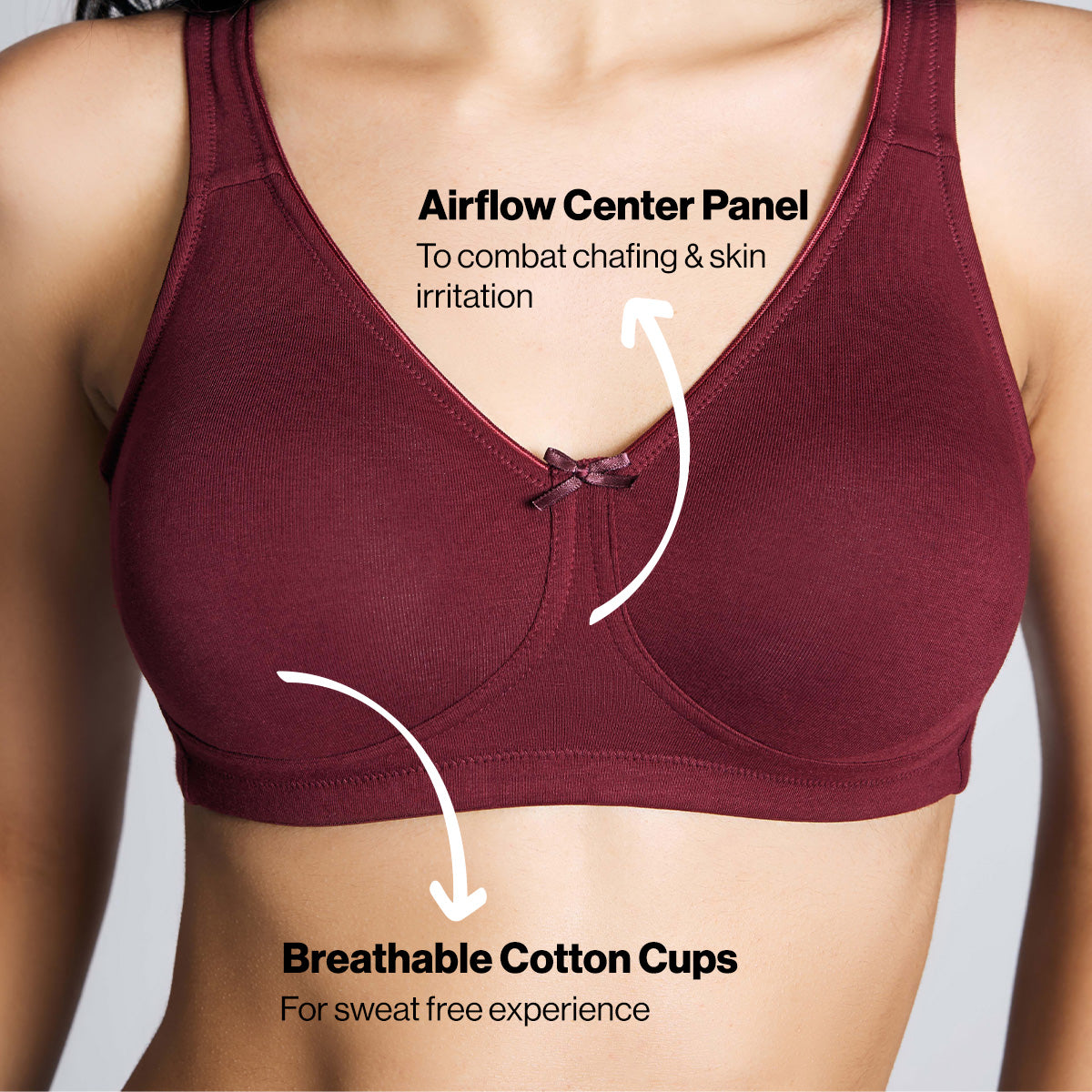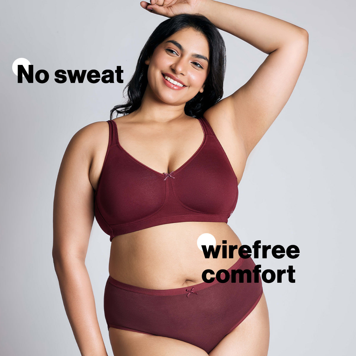 Nykd By Nykaa No Sweat Breast Separating Breathe Cotton Non Padded Non Wired Bra Maroon NYB105