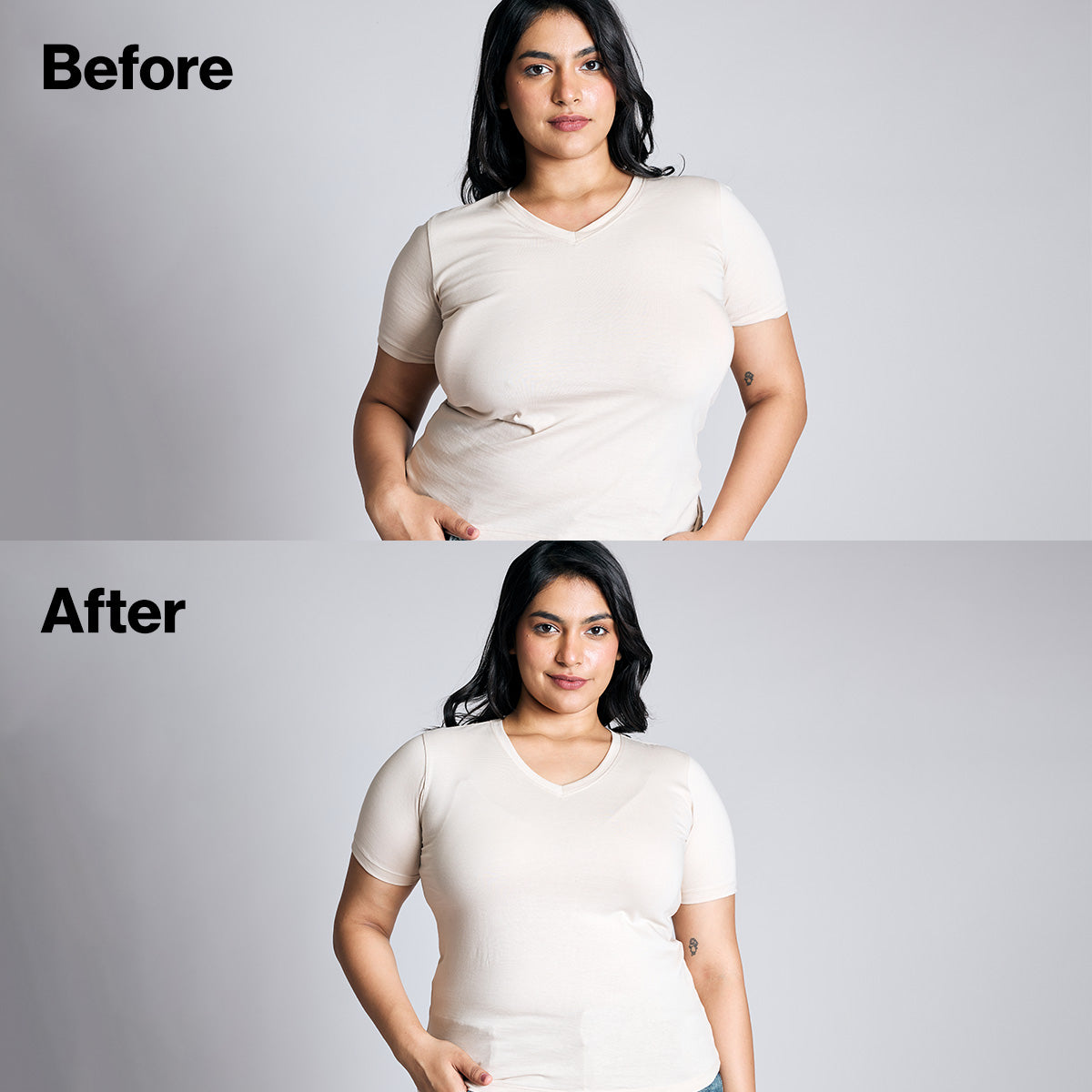 and a hidden breast separator panel for a defined shape and a sweat free experience.