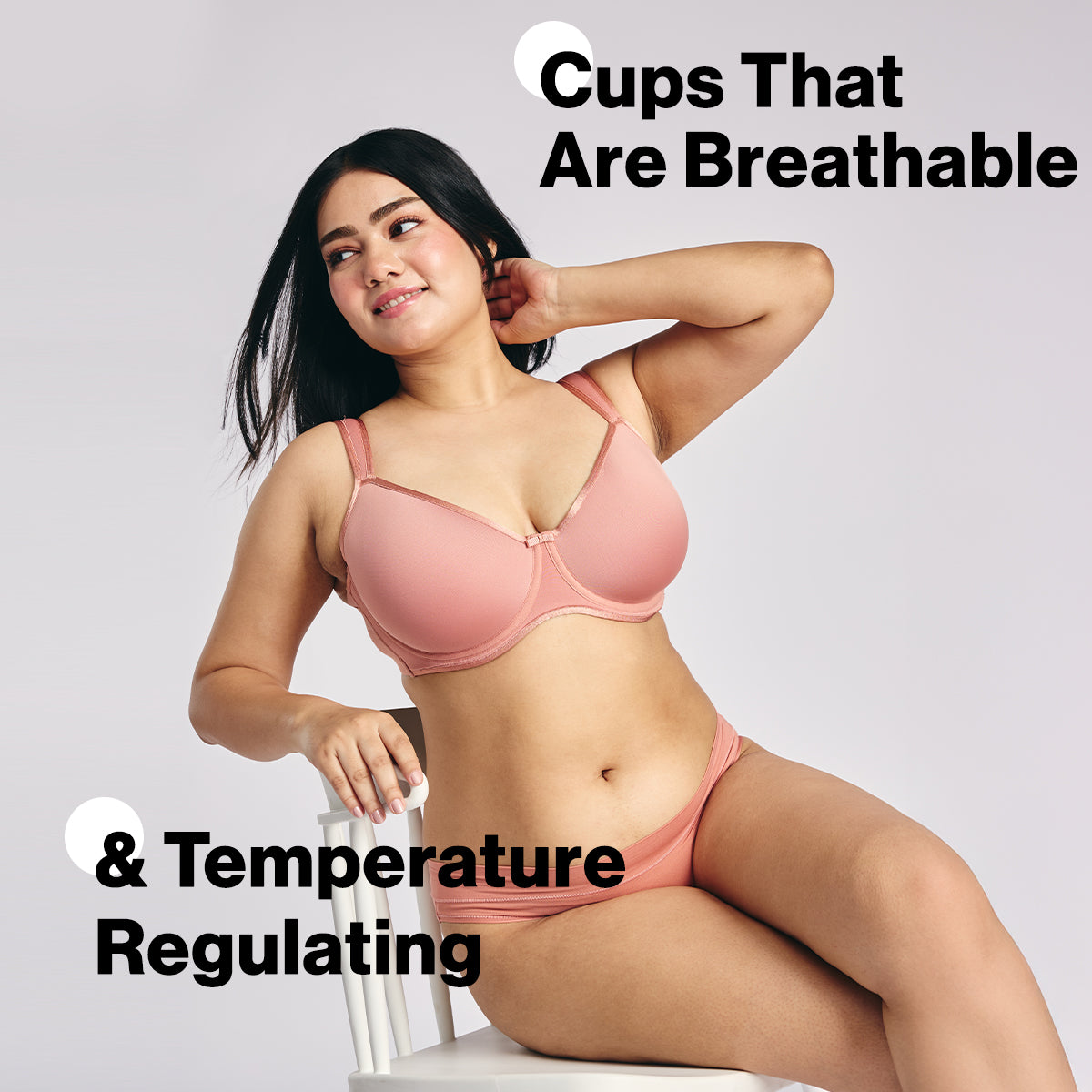 Meet the next-gen Spacer Bra, engineered for breathable support with a barely-there feel. Ultra-light 3D spacer cups promote continuous airflow to keep you cool, while delivering smooth, natural shaping under clothing. Finished with a no-poke flexible underwire that offers gentle lift without the feel of a wired bra. The result is reduced heat buildup, all-day comfort, and secure support that feels effortlessly light. A cooler, smarter take on the classic T-shirt bra.